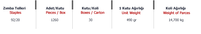 92/20 Serisi Zımba Teli 92/20 Serisi Zımba Teli 55100